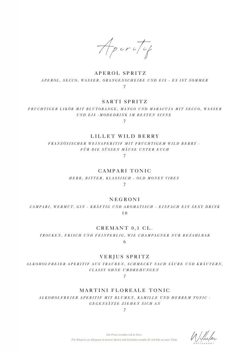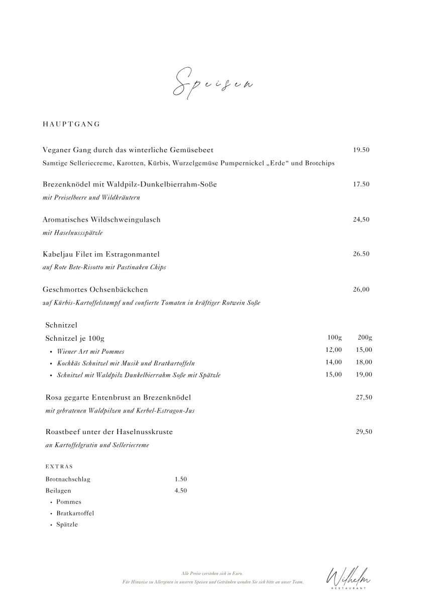 Wir sind das Team des Restaurant Wilhelm und vereinen Leidenschaft, Qualität und Gastfreundschaft auf jedem Teller.