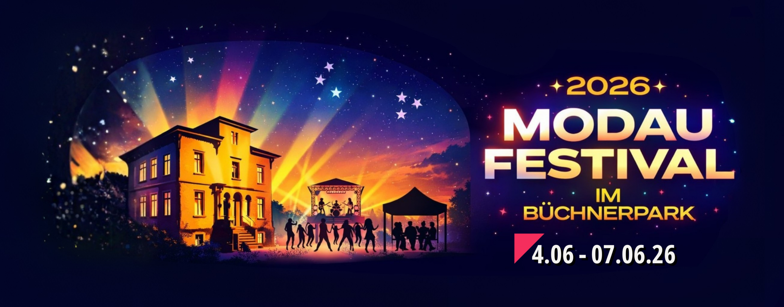 Im Büchnerpark, Uhlandstraße 20 in Pfungstadt, feiern wir 2026 eine ganz besondere Premiere: das 1. Pfungstädter Modau-Festival – ein stimmungsvolles Open-Air-Erlebnis direkt am idyllischen Bachlauf der Modau.